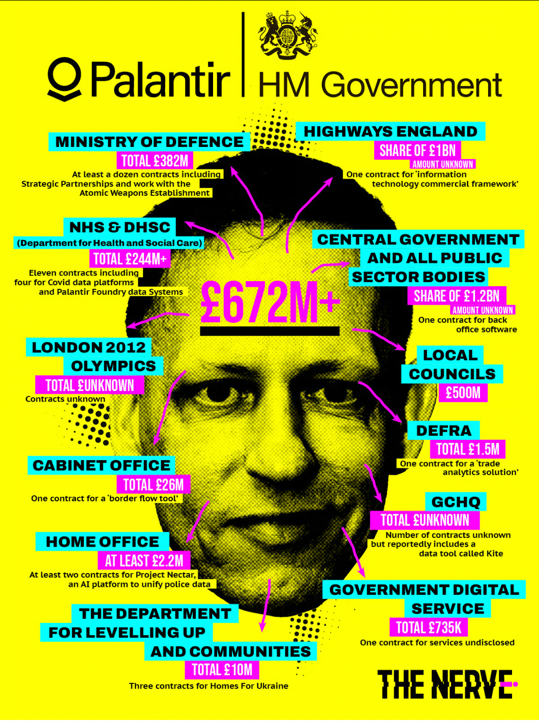 Here as promised is the first piece I wrote on Palantir, last week for the Nerve. It was a deep dive into Palantir’s contracts with the UK government and new revelations about its total enmeshment in the UK’s critical infrastructure. It’s not just our National Health Service and the Ministry of Defence but also, wait for it, our nuclear weapons.